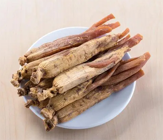 红参(35支)产品名称:红参(35支) 产品编号:793514862959 详细说明:红参是参的熟用品,该品为五加科植物人参Panax ginseng C.A.Mey.的栽培品(习称“圆参”)经蒸制后的干燥根。秋季采挖,洗净,蒸制后,干燥。其加工方法是经过浸润、清洗、分选、蒸制、晾晒、烘干等工序加工而成。红参在蒸制过程中,因为热处理会发生化学反应,成份上发生变化。干燥后的红参颜色红润,气味浓香。红参较白参相比组织致密、坚固、储藏性良好。红参俱有补气、滋阴、益血、生津、强心、健胃、镇静等作用。 主根呈纺锤形或圆柱形,长3~10cm,直径1~2cm。表面半透明,红棕色,偶有不透明的暗黄褐色斑块,具纵沟、皱纹及细根痕,上部有断续的不明显环纹;下部有2~3条扭曲交叉的支根,并带弯曲的须根或仅具须根残迹。根茎(芦头)长1~2cm,上有数个凹窝状茎痕(芦碗),有的带有1~2条完整或折断的不定根({丁})。质硬而脆,断面平坦,角质样。气微香而特异,味甘、微苦 红参是参的熟用品,其加工方法是经过浸润、清洗、分选、蒸制、晾晒、烘干等工序加工而成。红参在蒸制过程中,因为热处理会发生化学反应,成份上发生变化。会生成水参及白参不俱有的新的成份,即红参特有的生理活性物质G-Rh2,Panaxytriol,maltol等。G-Rh2、Panaxytriol有抑制癌细胞增长的作用,maltol俱有抗氧化作用。干燥后的红参颜色红润,气味浓香。红参较白参相比组织致密、坚固、储藏性良好。 红参俱有补气、滋阴、益血、生津、强心、健胃、镇静等作用。这些作用红参与白参没有严格的区别,但在补虚方面一般认为红参强于白参。久服红参可以提高人体免疫力、抗疲劳、抗辐射、抑制肿瘤、调整人体内分泌系统。红参适合于老人、久病体虚者,红参具有火大、劲足、功效强之特点,是阴盛阳虚者的首选补品,医药上治疗虚脱或强补多用红参。 功能主治: 大补元气,复脉固脱,益气摄血。用于体虚欲脱,肢冷脉微,气不摄血,崩漏下血;心力衰竭,心原性休克。 注意:不宜与藜芦同用。 食用方法 红参的吃法很有讲究。 1、炖煮:红参或白参在食用时常伴有苦味,如果将人参和精瘦猪肉、鸡、鱼等一起烹炖,可消除苦味,滋补强身。 2、蒸服:将红参切成约2厘米薄片,放入瓷碗内,加满水,封密碗口,放置于锅内蒸炖30分钟即可服用。 3、冲茶:将红参或干参切成薄片,放在碗内或杯中,用开水冲泡,闷盖5分后即可服用。 4、熬粥:将红参切成薄丁片,早餐熬粥时放少许,大补。 5、嚼食:将红参切成薄丁片,取2~3片含于口中细嚼,生津提神,甘凉可口,是最简单服用方法。 6、磨粉:将人参磨成细粉,每天吞服,用量视个人体质而定,一般每次--1.5 红参有其独特的作用: 1、红参具有大补元气,益血,养心安神的作用。 2、红参能调节神经、心血管及内分泌系统,促进机体物质代谢及蛋白质和RNA,DNA的合成。 3、红参能提高脑、体力活动能力和免疫功能,增强、抗疲劳、抗肿瘤、抗衰老、抗辐射、益心复脉、安神生津、补肺健脾。 4、红参可用于体虚欲脱、气短喘促、自汗肢泠、精神倦怠、食少吐泻、气虚作喘或久咳、津亏口渴、失眠多梦、惊悸健忘、阳痿、尿频、一切气血津液不足之症。 5、红参对高血压和动脉粥样硬化症,肝病、糖尿病、贫血、肿瘤及老年病等均有一定的作用。 6、红参对于治疗阳痿、遗精,尿贫遗尿等疾病也有一定的作用。 7、红参可以治疗脾肾虚寒,真阳衰弱,中气不足,四肢欠温,自汗暴脱。 红参与白参的区别: 红参和白参其实没有哪个效果好,只是哪一种更适合自己,红参是白参的熟用品,红参具有火大,劲足之特点。是阴胜阳虚者的首选补品,而白参是日常保健常用的补品。人参具有双向调节高血压的作用,可以把过高或过低的血压调到血压正常值的范围内,所以无论是高或低血压的人都可以用人参来保健。同时也可以搭配鹿茸片来食用,也有很好的效果。 条码:793514862959 成份:红参 规格:16oz(454g) 功效:补元气,复脉固脱,益气摄血。用于体虚欲脱,肢冷脉微,气不摄血,崩漏下血;心力衰竭,心原性休克。 产品询价: |